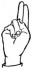На ћирилици написано ИВА ШАРЕНАЦ састоји се из 10 слова [?]. Исписано ћириличном једноручном азбуком за глувонеме: